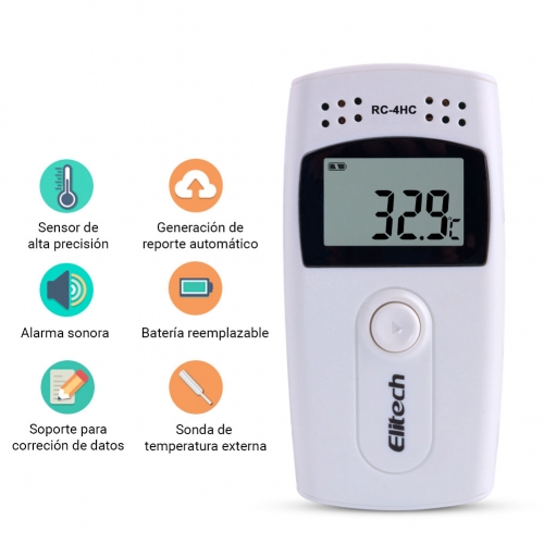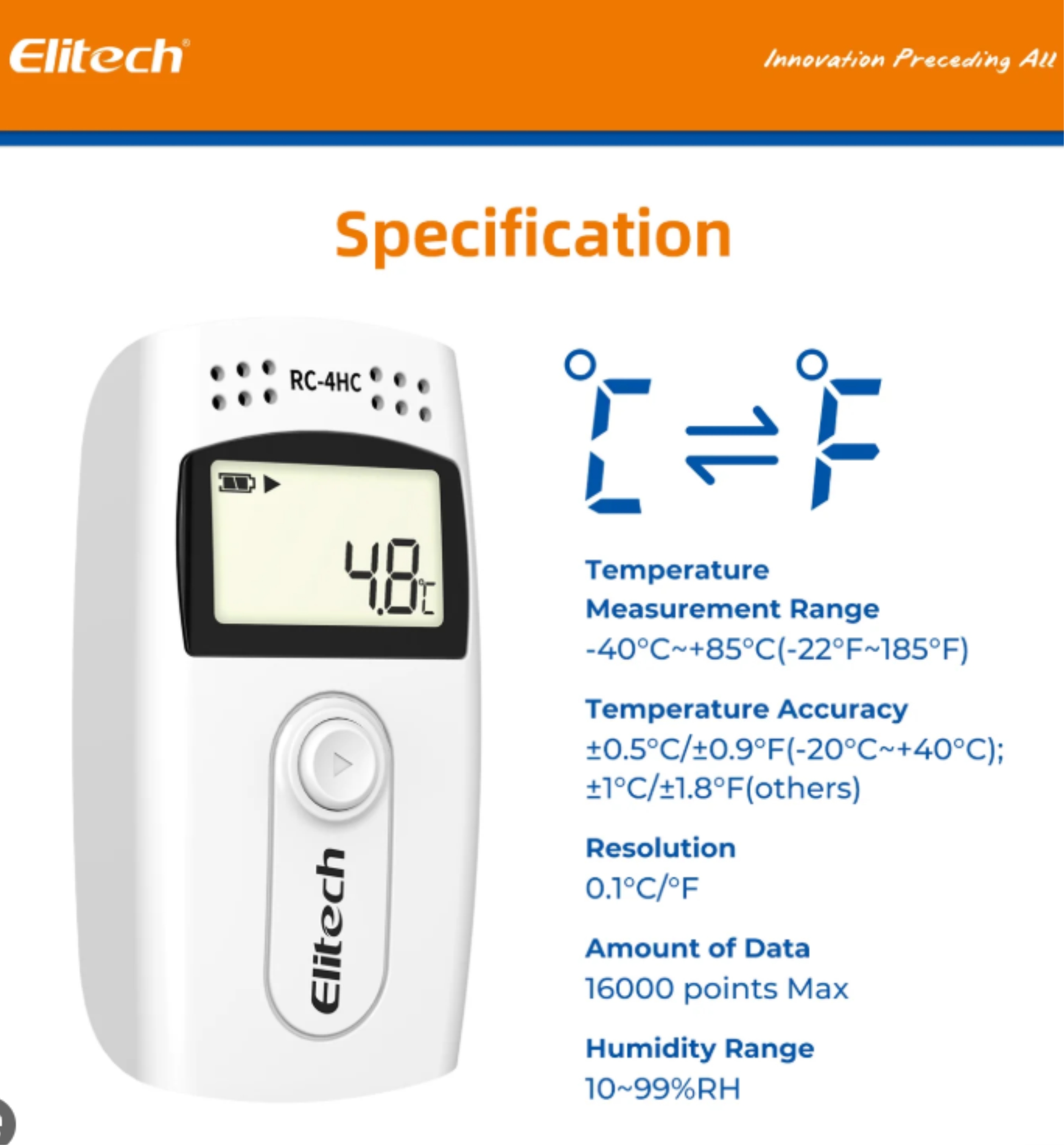 Elitech RC-4HC Mini registrador de datos de temperatura y humedad se utiliza principalmente para el registro de temperatura y humedad durante el almacenamiento y transporte de alimentos, medicamentos, productos químicos y otros productos, especialmente ampliamente utilizado en todos los enlaces de almacenamiento, logística y frío. cadena, como contenedores refrigerados, camiones refrigerados, paquete refrigerado, almacenamiento en frío, laboratorio, etc.